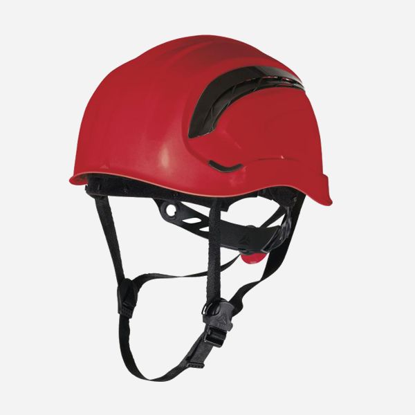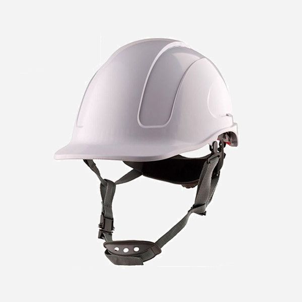 Casco de obra ABS. Forma innovadora de gorra de baseball que proporciona una mayor visión vertical. Sometido a tests con visera llevada hacia delante o hacia atrás, para menos estorbo. Arnés interior de poliamida : 3 bandas textiles con 8 puntos de fijación. Sudadera de esponja. Sistema innovador de presión con botón «color to color». Ajustable desde los 53 a los 63 cm de contorno de la cabeza. 2 posiciones posibles de contorno (alto/bajo) para un mejor confort. Aislamiento eléctrico hasta 1000 VAC o 1500 VCC.